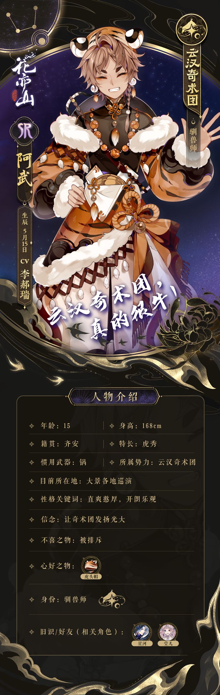 云汉奇术团的驯兽师,性格热情开朗,跟所驯养的老虎关系很好。