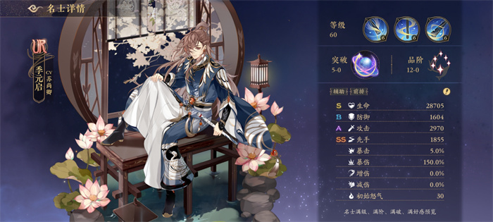 鼓鸣:在鼓鸣状态下使用怒气技能时,提升全体队友10点怒气,回复全体名士季元启攻击力50%的生命并提升全体名士10%伤害,持续2回合,无法驱散。