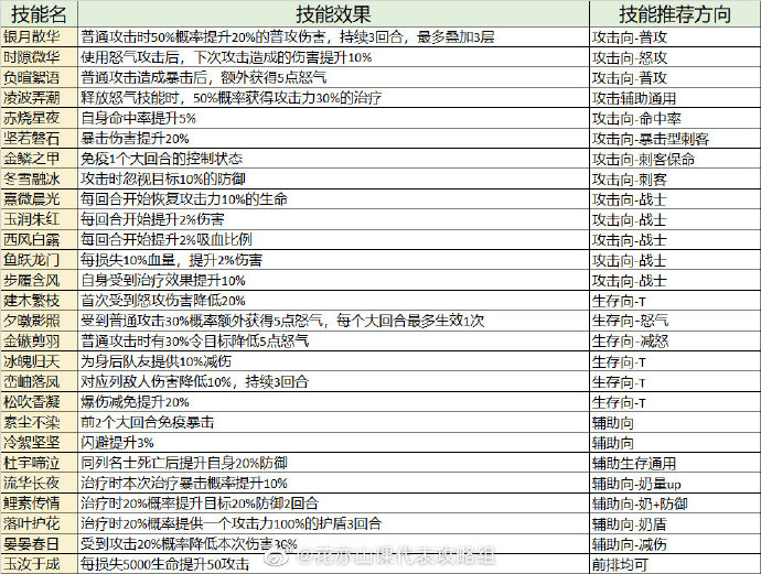 需要注意:列出来的技能都是可以携带的,排序没有绝对的先后,攻略仅供参考,大家按需(和按脸)进行选择。