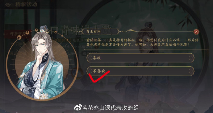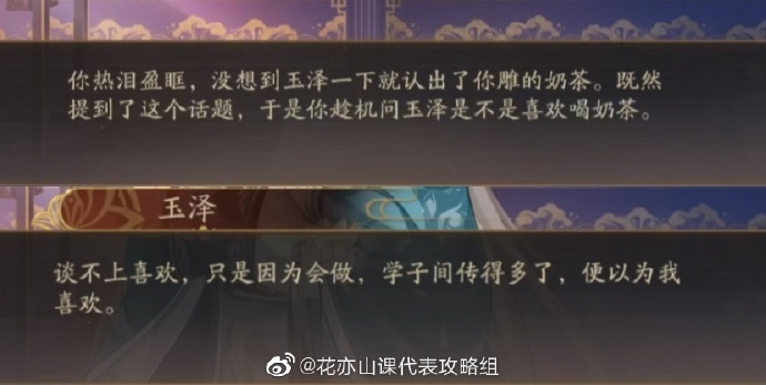 今天的题目是玉泽喜不喜欢牛乳茶,答案是不喜欢。
