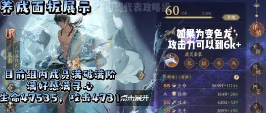 群攻流领队,配合了了花忱食用效果佳。能扛能输出,鹿灵夏泰配合其被动能有效实现“阵亡了,但没完全阵亡”,持续在场外影响战局变化。