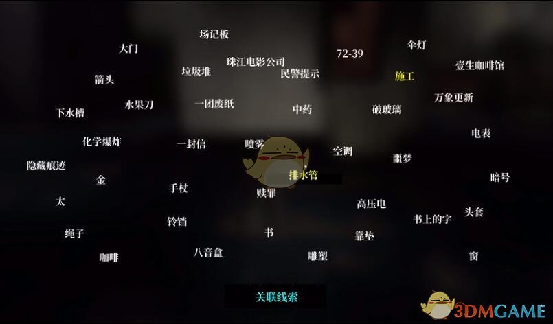 每一个线索旁边都有一个详细信息的按钮。各种获得的线索之间可以进行关联,选中多个线索后变为红色,点击[关联线索]按钮就可以诞生新的线索。