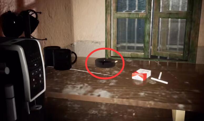 位置:进入到小屋之后,点击桌子上的烟灰缸即可获得整条线索。