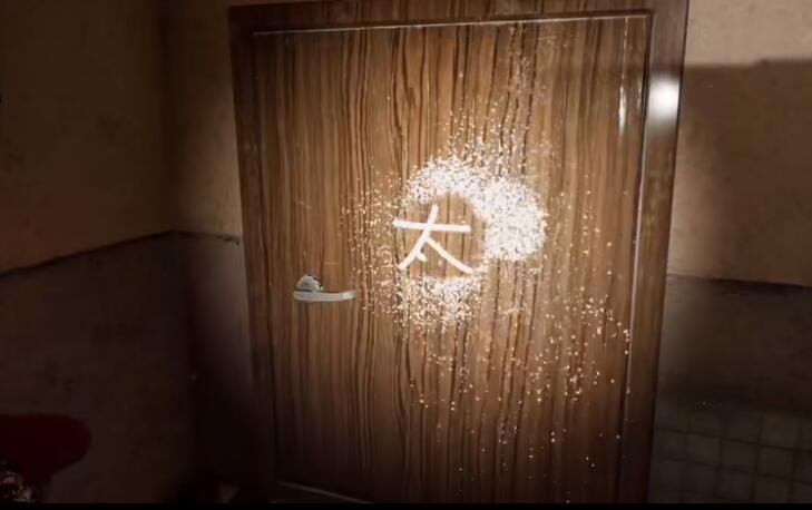 线索详情:我把喷雾喷在门上,呈现出一个太字。