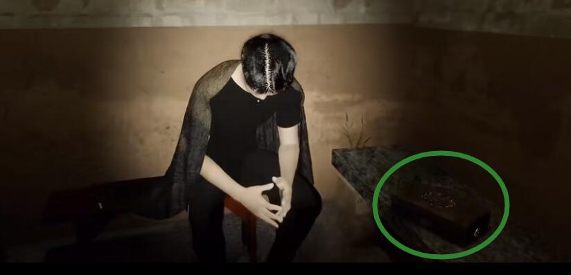 杜京生旁边的凳子上面,需要进入后院里面收集线索才可以让杜京生走开。走开之后点击盒子就可以打开。