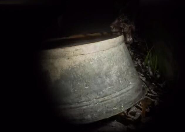 线索详情:一个破旧的倒扣大铁盆。