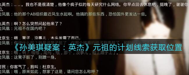 以上就是小编整理带来的《孙美琪疑案:英杰》元祖的计划攻略线索位置介绍,更多精彩内容,请点击关注这里下载站,小编将持续为您更新!