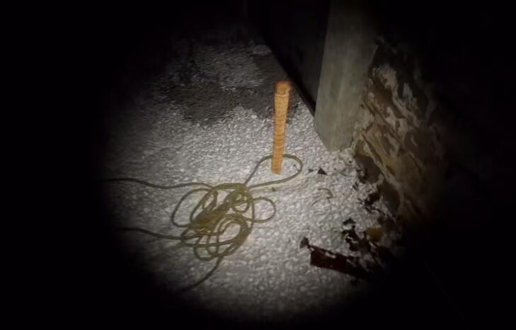 绳子位置:大院铁门右侧的地上。