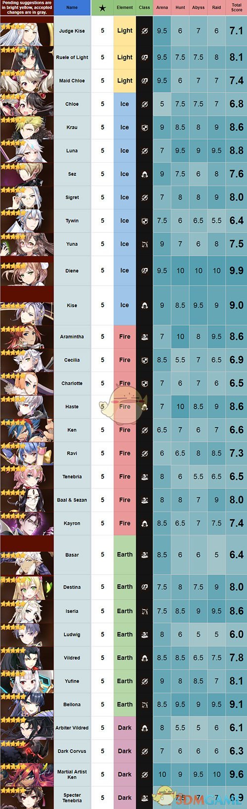 伊赛莉亚:降低游戏难度的T0角色,强度没必要多说什么。基本算是30抽的头奖,但是只有单个木飞剑没有奶或输出相对来说前期略吃力,以这次水龙限定为例,萌新30抽能有她加个水奶或者火奶(非常非常欧的情况下)基本就可以无脑确定了,速度抱大腿过10-10抽光暗考验人品,攒钻无脑出水龙,这样木飞剑+水龙+奶基本够你把迷宫箱子的装备拿遍去推深渊拿T5T6吸血套,有那2套足够你输出打讨伐以及地狱迷宫。