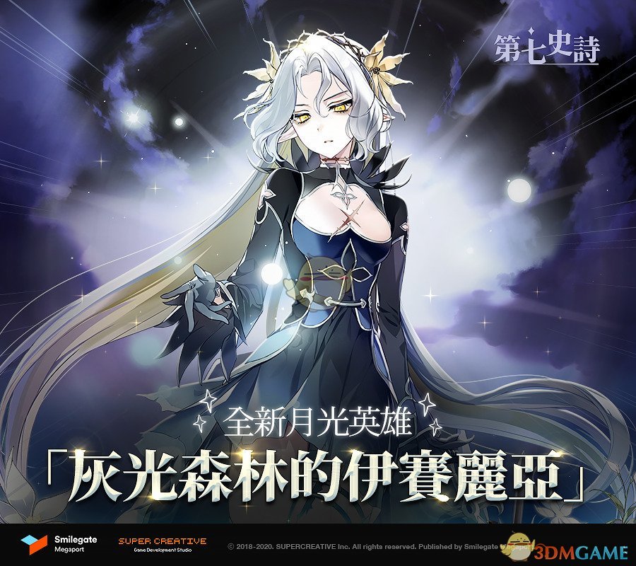 全新月光英雄「灰光森林的伊赛丽亚」是黑暗属性的射手英雄,本身有着因在讨伐黑魔女途中受到魔女的诅咒而自我监禁的悲伤故事。