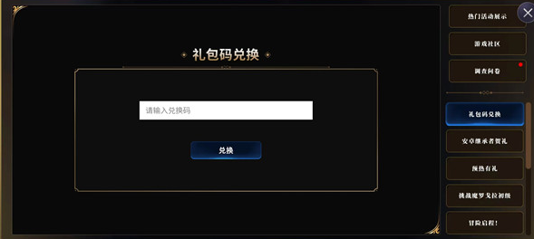 2、点击进去之后我们找到礼包码这个选项,点击输入正确有效期内的兑换码即可获取奖励;