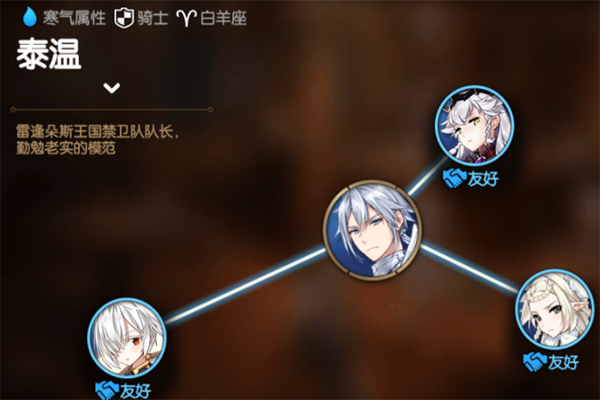 赛西莉亚(友好)——通过许多传闻知晓万坦贝克女王赛西莉亚的能力,因此很敬仰她, 伊赛丽亚(友好)——勇猛武力、忠诚道义,任何一点都不输给任何人的优秀骑士。我也想变得和您一样。奥缇莉尔(友好)