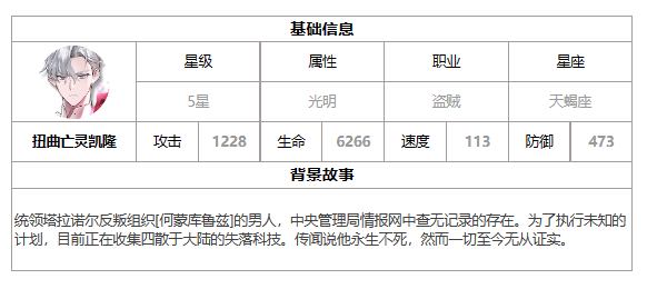第七史诗是一款十分火爆的二次元手游,其中扭曲亡灵凯隆是游戏中的一名角色,不少小伙伴想知道该角色怎么样,下面小编为大家带来了扭曲亡灵凯隆分析,希望对感兴趣的玩家有所帮助,想了解的小伙伴来看看吧。