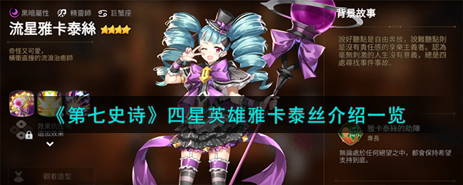 第七史诗是一款十分火爆的手游,其中雅卡泰丝是游戏中的四星角色,不少小伙伴想了解该角色,下面小编为大大家带来了四星英雄雅卡泰丝的介绍,希望对感兴趣的玩家有所帮助,大家一起来看看吧。