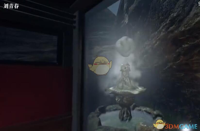 花园:房屋和巨石之间修了一个小花园,并没法进入,只能观赏。花园的景观由一座喷泉和一只巨手构成,喷泉上方的石头很像外面尊体那种石头。