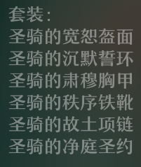 四件套:使装备者提供的护盾能够抵消的伤害上限提高20%。