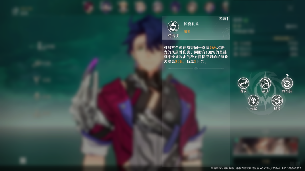 值得一提的是,不要觉得65%的概率太低,这游戏是有着“效果命中”类的遗器的,桑博本身的行迹里也有数个提高效果命中的BUFF,不包括遗器中效果命中的词条,最高可以达到48%的效果命中。