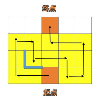 2、具体步骤:往左两格,往上两格,往右一格,往下一格,往右两格,往下一格,往右一格,往上两格,往左两格,往上一格,成功到达终点;