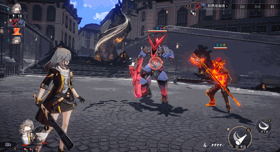 在两种模式中选择其一挥出全力一击。【模式一】对指定敌方单体目标造成等同于开拓者300%/315%/330%/345%/360%/375%攻击力的物理属性伤害。【模式二】对指定敌方单体目标造成等同于开拓者180%/189%/198%/207%/216%/225%攻击力的物理属性伤害,并对其相邻目标造成等同于开拓者108%/113%/118%/124%/129%/134%攻击力的物理属性伤害。