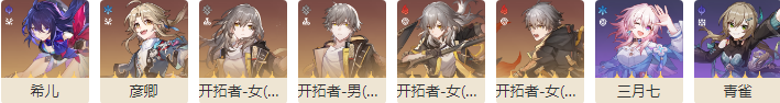 晋阶角色:希儿、彦卿、三月七、青雀。