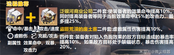 泛银河商业公司二件套:使装备者的效果命中提高10%。同时提高装备者等同于当前效果命中25%的攻击力,最多提25%。