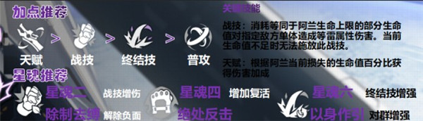 战技:消耗等同于阿兰生命上限的部分生命值对指定敌方单体造成等雷属性伤害。当前生命值不足时无法施放此战技。