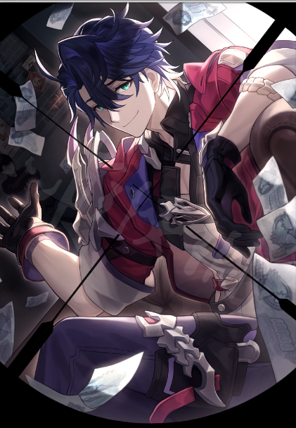瞄准镜缓缓转动,男人仍自顾自地抛洒着一叠又一叠的纸钞。