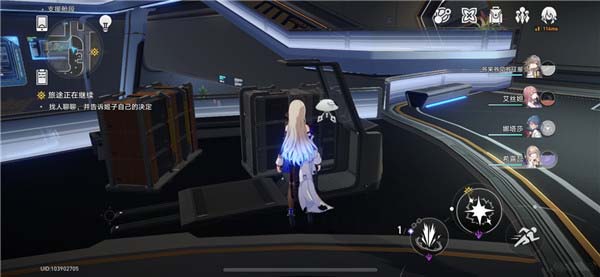 如图,位于收容舱段中部的浮桥上,旁边有很多怪,比较好确认
