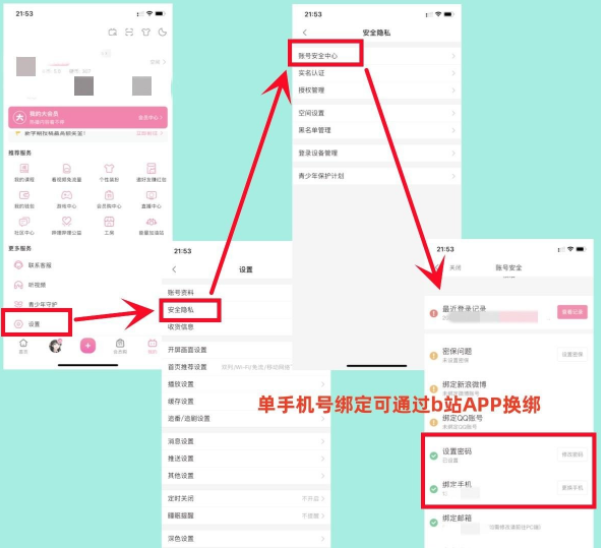 单手机号绑定可通过b站APP换绑