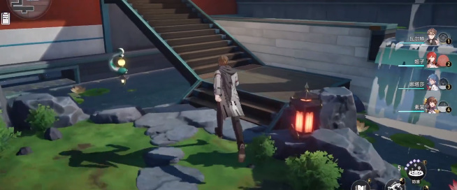 4、玩家视角往后面转,一直走再左转,穿过一片荷塘,笔直走,然后上楼梯,在楼梯的右侧的角落里就是机巧鸟的位置;
