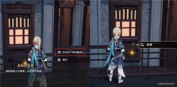 第一步,来到铆钉镇如图所示的位置,调查窗户旁的金色光点,获得提示:寻找姐姐的铃铛。