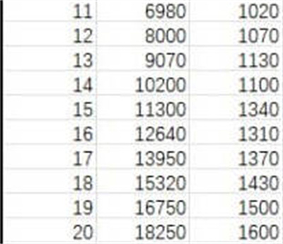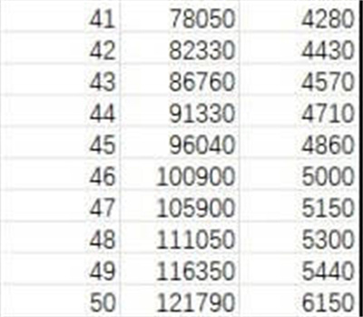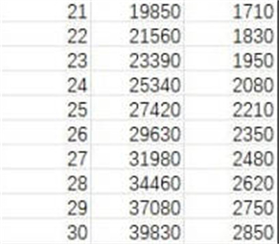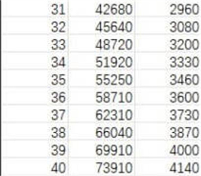 4:具体的全等级所需里程,你们可以观察下面的图片,图片以十级为一个维度,同时后面的相差值是和上一个等级的差距。