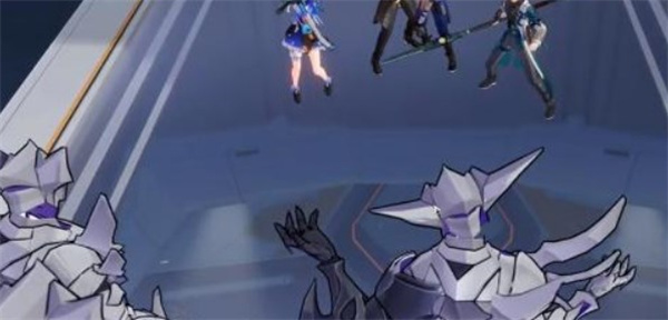 2、出来以后会看见一个反物质战队,玩家必须向前击败这东西,玩家在击败的时候使用和对手缺点同样的属性攻击能够减少韧性;