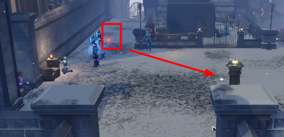 4、继续往前走拾取下图位置的热能核心,并放置到下图的照雪灯炉中,并再次完成战斗,需要击败所有的敌人;