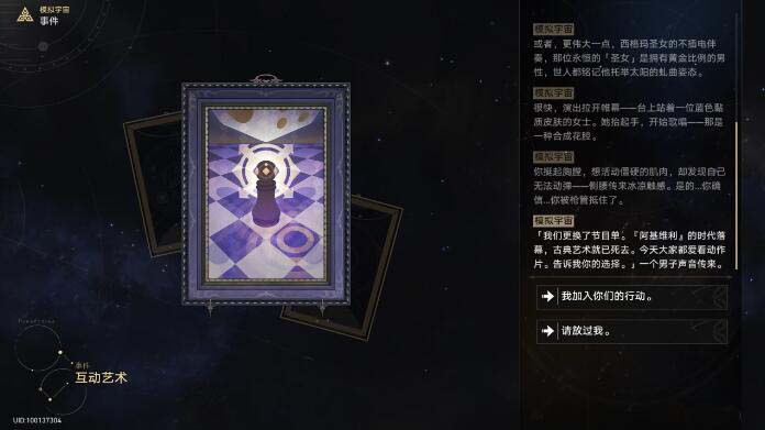 崩坏星穹铁道互动艺术事件怎么选?有很多的小伙伴都不知道这个互动艺术事件应该怎么选,其实一共会出现两个事件,所以今天小编向大家分享一下互动艺术事件选择的攻略,有需要的小伙伴快来一起看看吧。