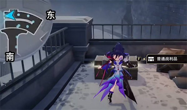 2:然后我们朝着东方向走,贴着右侧的墙走,然后经过三个军官,右转看到宝箱;