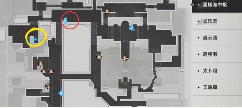 1、玩家可以传送到星槎海神中枢左上方的红色圈圈处。