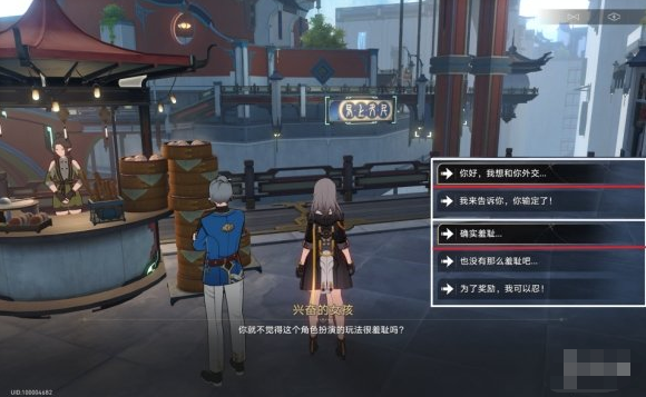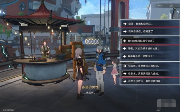 之后与分别与寡言的男性和兴奋的少女对话,选项图中标记的选项