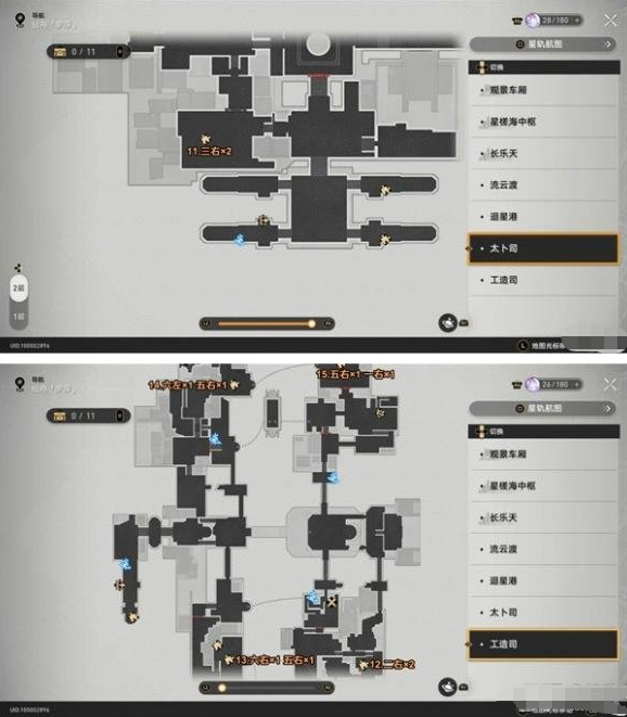 『仙舟「罗浮」』的「流云渡」、「迴星港」、「太卜司」和「工造司」共有15个「枘凿六合」,也就是二阶魔方,在开启第4、10和15个丰厚战利品之后,都会收到一条短信。完成一阶段的15个「枘凿六合」解谜,在相同的位置,再次刷出二阶段的15个「枘凿六合」解谜。