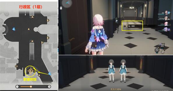 (1)去下图【行政区(1层)】的【歌德宾馆】里面,将走廊里面能【调查】的房门,全部【调查】一遍后,会出现2个小女孩不断向你靠近(ps:这是宾馆惊魂啊),然后我们会被传送到【宾馆房间】里,这时可获得20冬城盾