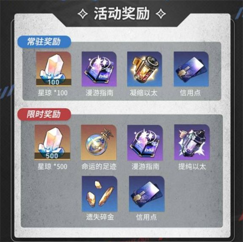 5、奖励介绍:600星琼+命运足迹+漫游指南,提纯以太,遗失碎金,信用点。