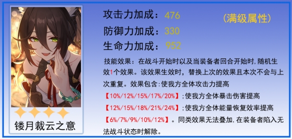 停云的专属光锥,同时提供高额攻击力和暴击,攻击数据高于其它四星光锥,对于需要堆攻击力的停云是比较适配的。