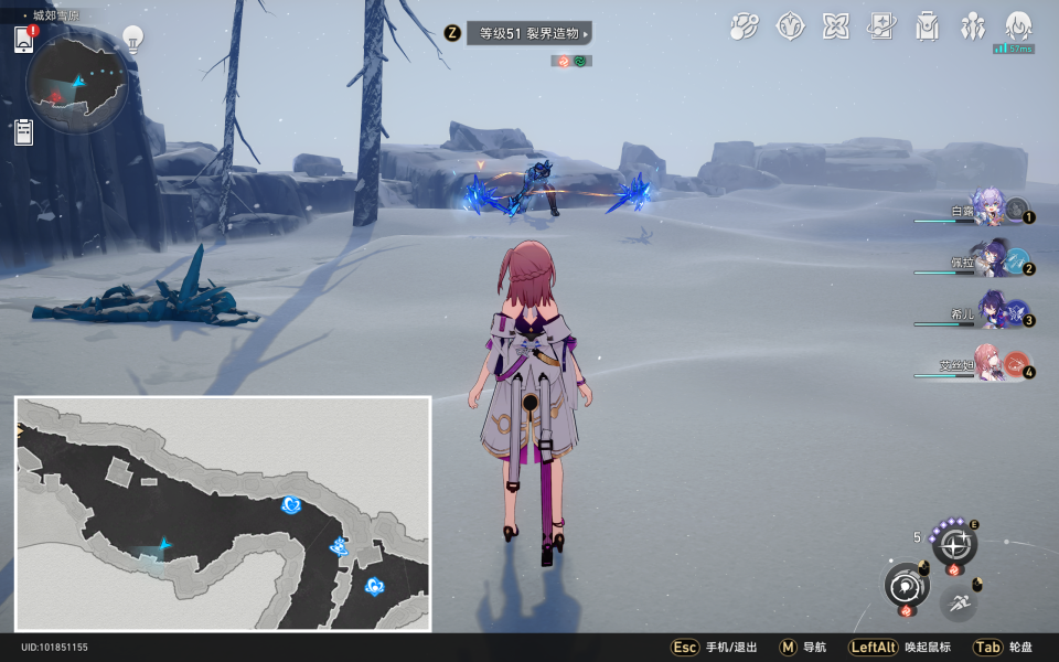 之后来到郊区雪原这个位置,使用秘技攻击左边的怪就行了