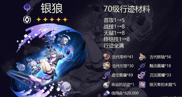 崩坏星穹铁道70级行迹拉满需要什么材料?崩坏星穹铁道80级行迹拉满需要什么材料?崩坏星穹铁道里面大家要是想银狼变强的话那么就需要拉满银狼的行迹了呢,需要我们准备好材料,70级行迹和80级行迹拉满需要的材料还不一样,来看看吧!