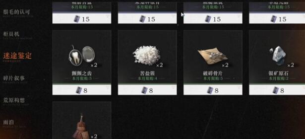 清扫咒,银矿原石,骨片,苦茶簇,颤颤之齿