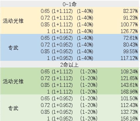 1命银狼穿伤害套计算(面板不高),高命座的话自行更换对应的增伤/倍率区的数值(只有两个),本次不计算二件套及随机性较大的暴伤,如果想知道在结果处×(1+暴伤),专武的易伤是攻击结算后触发吃不到(除非跑怪前面去了),大招是同时结算可以吃到减防加成;