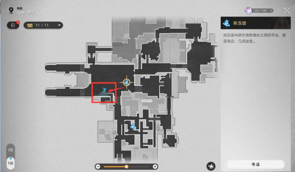 1、打开地图在,找到罗浮仙舟-流云渡地图的位置,从【积玉坊传送点】直接传送过来;