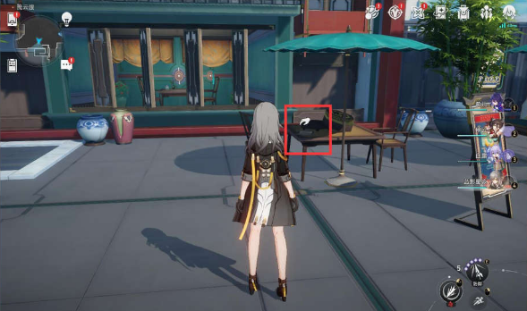 2、到达之后,从积玉坊传送点出来,往西南方向走,在左下角的位置有一个有广告牌的桌子,在这个桌子上就是《星槎进出港报告管理》书籍了。
