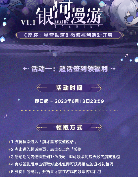 以上就是小编整理带来的崩坏星穹铁道1.1超话签到活动,更多相关游戏攻略,请关注这里下载站!