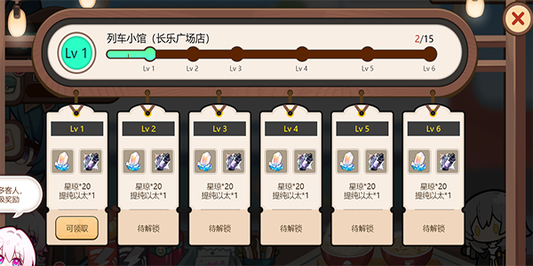 6、左上角的列车小管下面是我们的等级,我们通过接待客人是可以提升我们的等级一共有6个等级全部完成之后我们可以获得全部奖励哦!